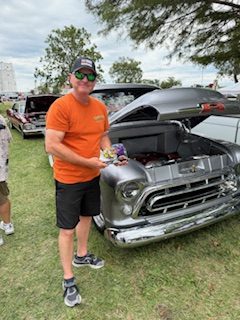 John Simmons recipient – Car#472, Brit Shelton, Overland Park, KS – 1957 Billet Silver Chevy 3100 Pickup